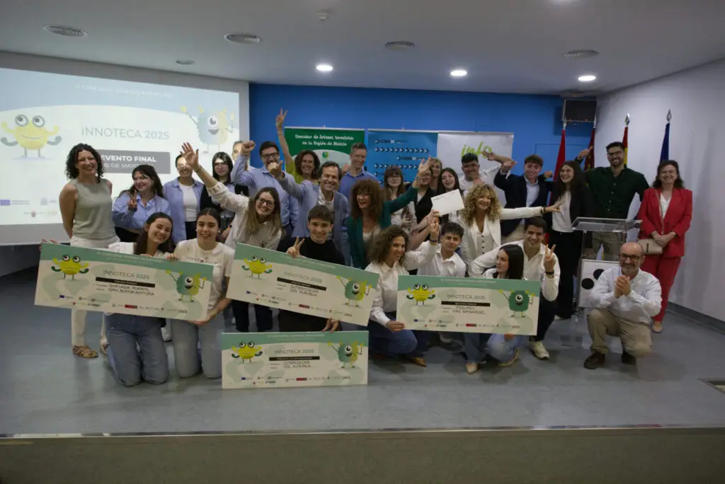 El Concurso INNOTECA se ha afianzado en su sexta edición como activo estratégico del desarrollo de la innovación y fomento del talento joven en la Región de Murcia. En la edición de 2025, ha reclutado a 114 alumnos y alumnas de 14 centros educativos de la Comunidad e implicado a 20 docentes comprometidos con el fomento de la creatividad y el emprendimiento en el aula.